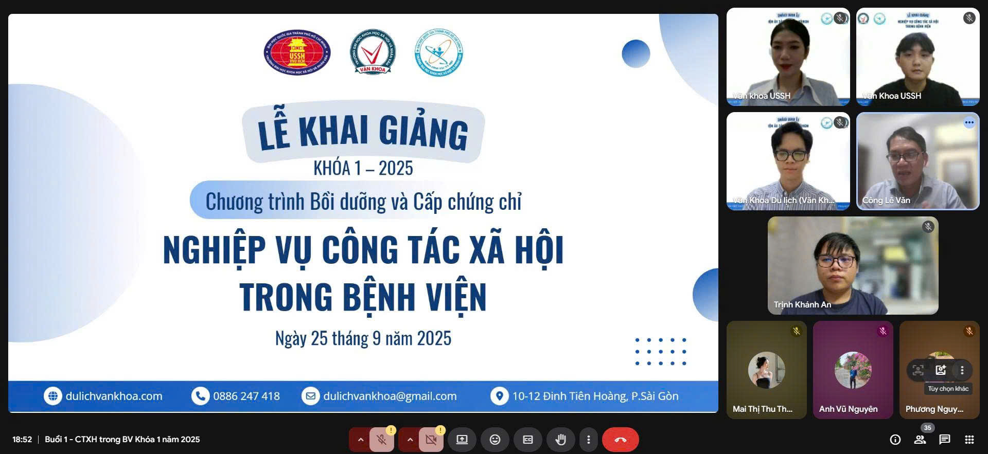 Sự kiện đánh dấu bước khởi đầu quan trọng cho hành trình đào tạo, bồi dưỡng kiến thức và kỹ năng nghề nghiệp cho đội ngũ học viên đến từ nhiều tỉnh thành trên cả nước. Đây cũng là khóa học đầu tiên trong năm 2025, khẳng định vai trò tiên phong của Văn Khoa USSH trong lĩnh vực đào tạo công tác xã hội y tế.