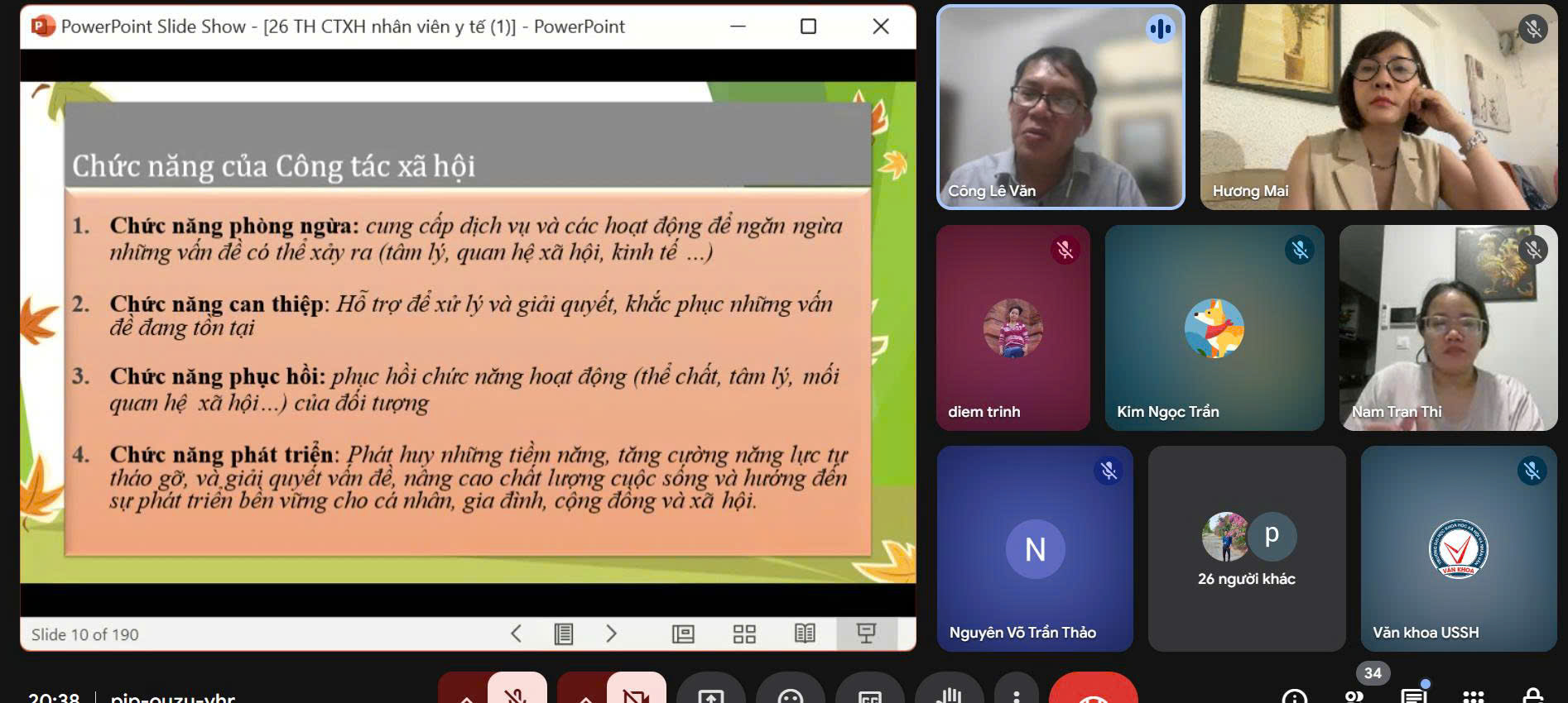 Văn Khoa USSH gửi lời chúc mừng đến các học viên đã chính thức bắt đầu hành trình học tập và phát triển mới mẻ, đầy giá trị. Khóa học hứa hẹn sẽ mở ra nhiều cơ hội nghề nghiệp, giúp học viên vững vàng tiến xa trong sự nghiệp công tác xã hội trong bệnh viện.